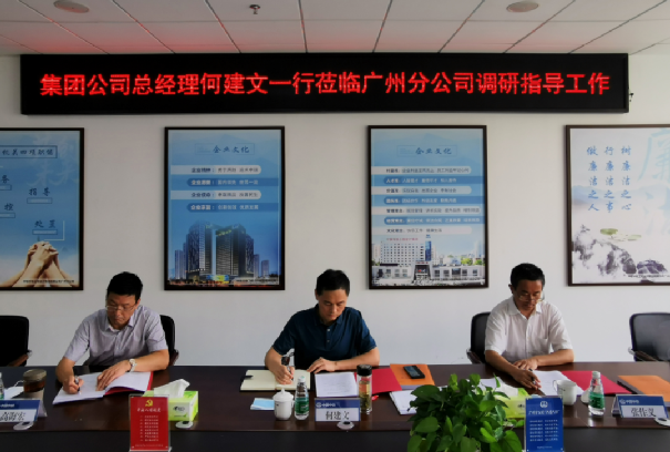 8月26日至27日,何建文总经理到深圳设计院、广州分公司慰问看望干部职工、调研指导工作。深圳设计院院长刘建辉、广州分公司党委书记陈磊分别就所在单位的基本情况、党建工作、近三年经营生产管理总体情况和2020年的工作思路做了汇报。在听取各单位汇报后,何总充分肯定了深圳院、广州分公司所做的工作和取得的成绩并提出了六点要求:1.加强经营开发,确保完成全年各项目标任务;2.加强人才队伍建设,着力培养经营开发、专业技术、企业管理三支队伍;3.提升服务意识,大力培育广大员工以客户为中心的服务文化;4.要提高站位,充分发挥珠三角的区位优势,扎根属地、融入地方、区域联动、统筹资源,打造集团公司华南地区的生产、经营、服务根据地;5.加强安全生产,把握疫情防控常态化不放松;6.加强廉洁教育,各级党员干部要警钟长鸣、坚守底线。