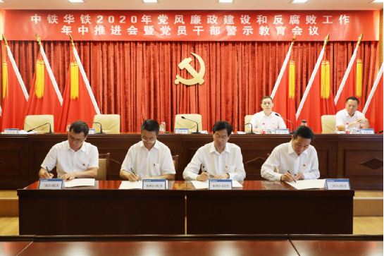 8月18日,中铁华铁设计集团2020年党风廉政建设和反腐败工作年中推进会暨党员干部警示教育会在集团公司本部召开。集团公司党委书记、董事长彭晓华出席会议并讲话,党委副书记、总经理何建文主持会议,党委委员、纪委书记张作义讲话。集团公司领导班子成员及高管、专职三总师副职、安全生产总监、纪委副书记、机关部门正职、机关纪委书记、党委巡察办和纪委全体人员;所属各单位党政主要领导、纪(工)委书记(纪律检查委员)、部门负责人和纪(工)委全体人员等共计120余人参加会议。会议以视频方式召开,连线到京内外单位共计八个分会场。