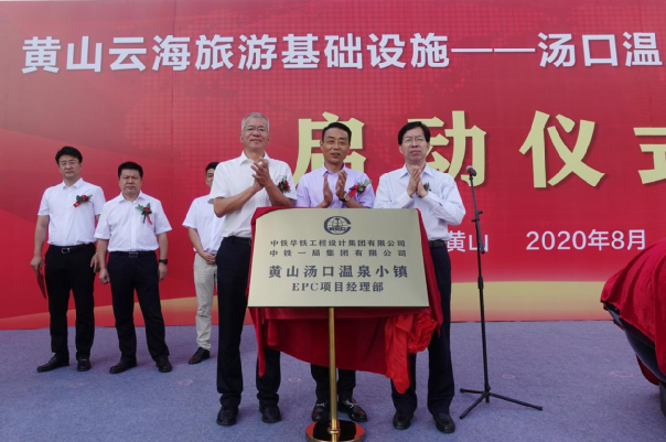 8月14日,中铁华铁设计集团党委书记、董事长彭晓华应邀出席黄山云海旅游基础设施——汤口温泉小镇EPC项目启动仪式并致辞。宇仁集团董事长欧阳朝信,中铁一局总经理朱卫东出席仪式并分别致辞。